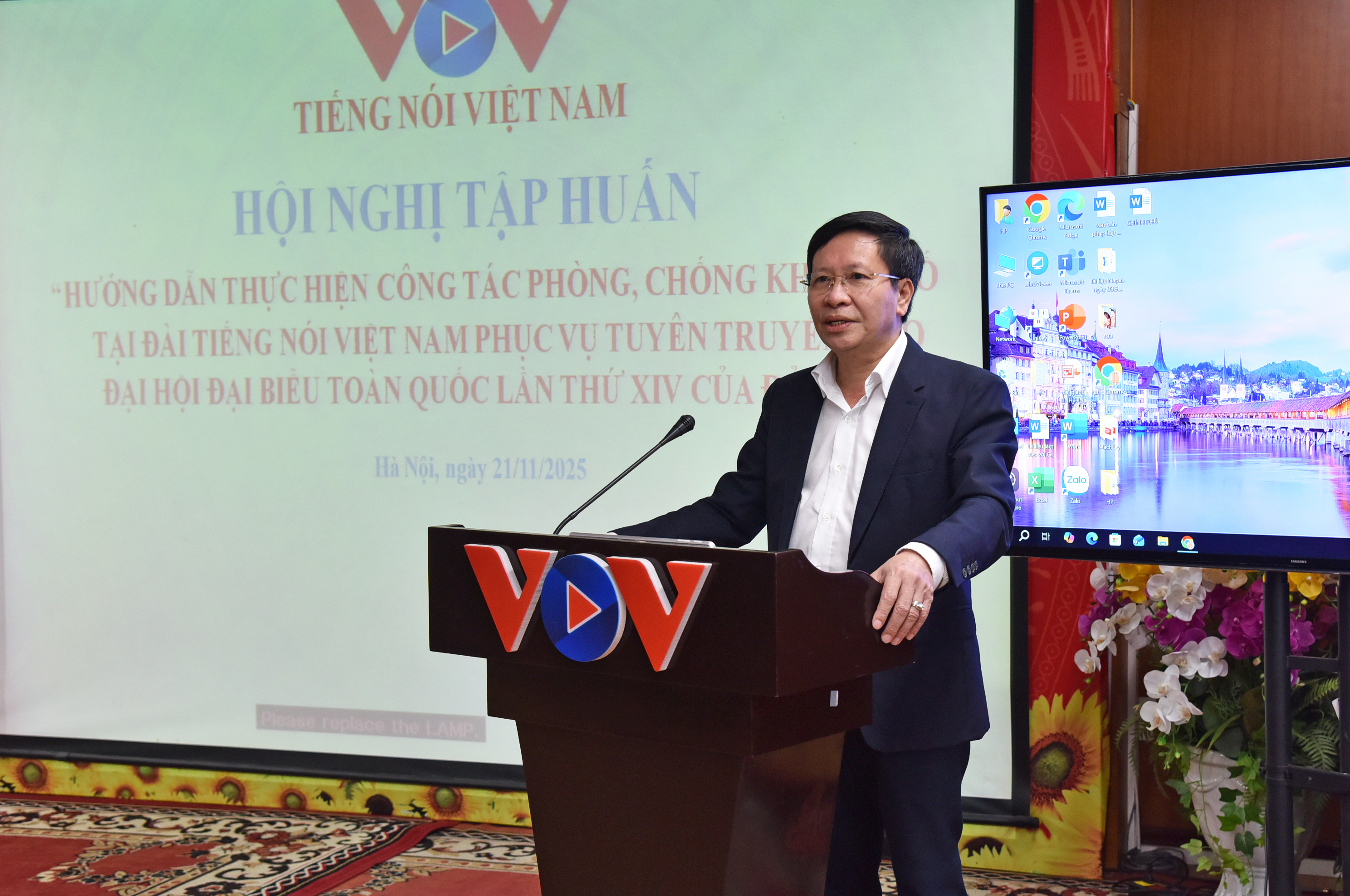 Phát biểu khai mạc, Phó Tổng Giám đốc Vũ Hải Quang nhấn mạnh ý nghĩa thiết thực của Hội nghị trong việc trang bị kiến thức, kỹ năng và quy trình ứng phó cho đội ngũ tác nghiệp trước, trong và sau Đại hội. Phó TGĐ khẳng định: là cơ quan báo chí chủ lực, Đài TNVN có trách nhiệm cung cấp thông tin chính xác, kịp thời, đồng thời bảo đảm an ninh, an toàn trong tác nghiệp, góp phần giữ vững môi trường truyền thông ổn định trước thềm Đại hội.