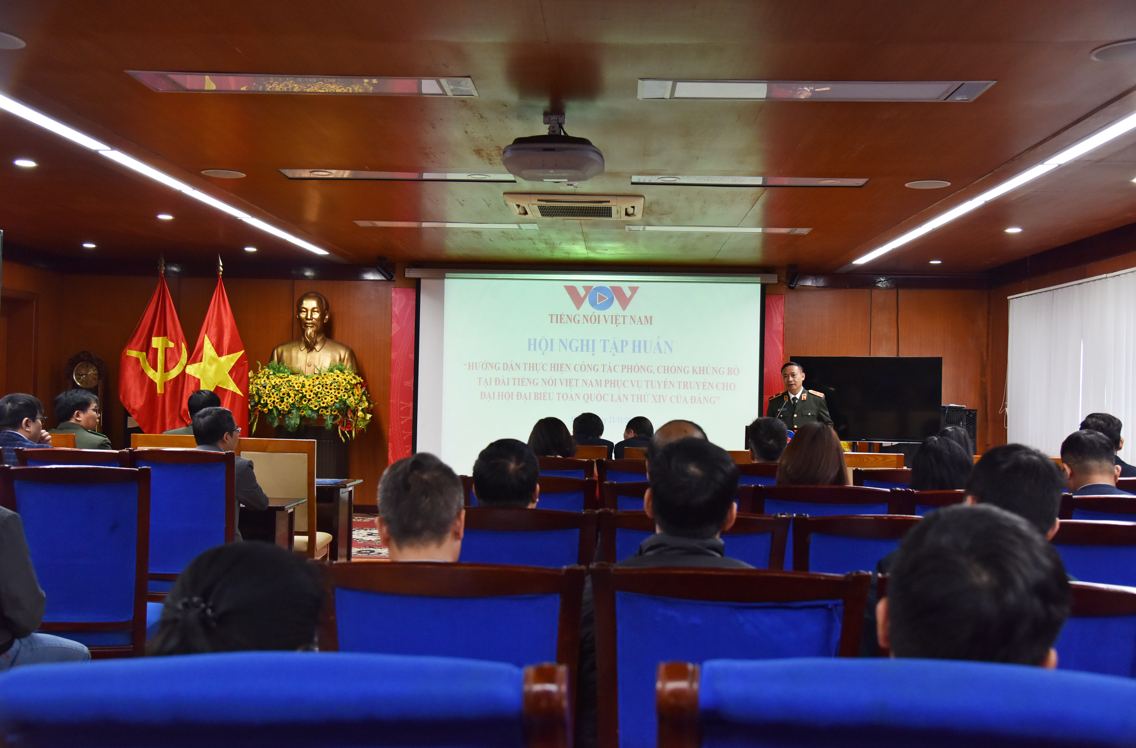 Sáng 21/11, tại Trung tâm Phát thanh Quốc gia (58 Quán Sứ, Hà Nội), Đài Tiếng nói Việt Nam (TNVN) phối hợp với Cục An ninh nội địa, Bộ Công an tổ chức Hội nghị tập huấn hướng dẫn công tác phòng, chống khủng bố phục vụ tuyên truyền Đại hội đại biểu toàn quốc lần thứ XIV của Đảng.